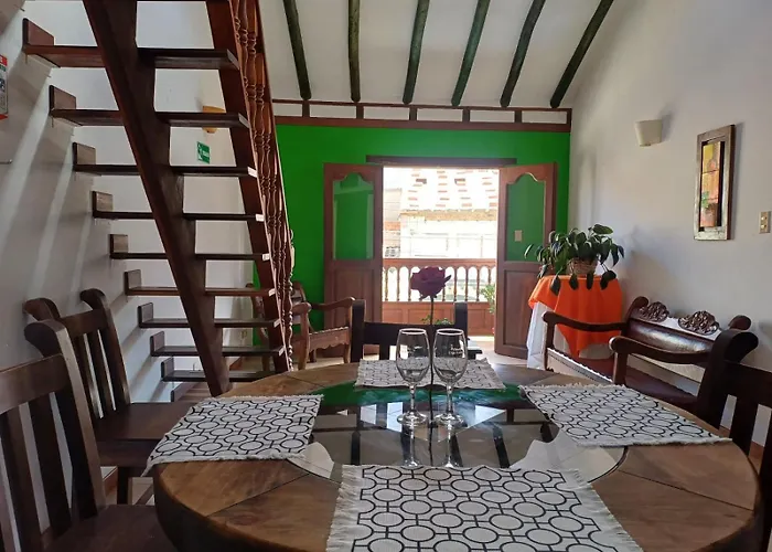 Restaurante Aromas de la Villa提供哥伦比亚菜,位于很好的位置,距离酒店仅250米.